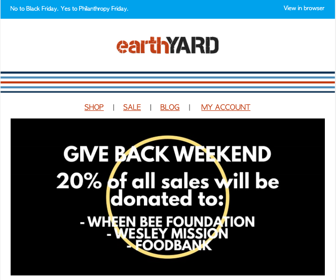 Objective: In lieu of Black Friday sales, earthYARD offered customers the chance to give back by donating a portion of sales to charity.